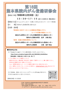 この研修会は、がん登録部会の活動の一環として、院内がん登録の精度向上と実施施設の拡大を目的としたものです。皆様のお申し込みをお待ちしております。