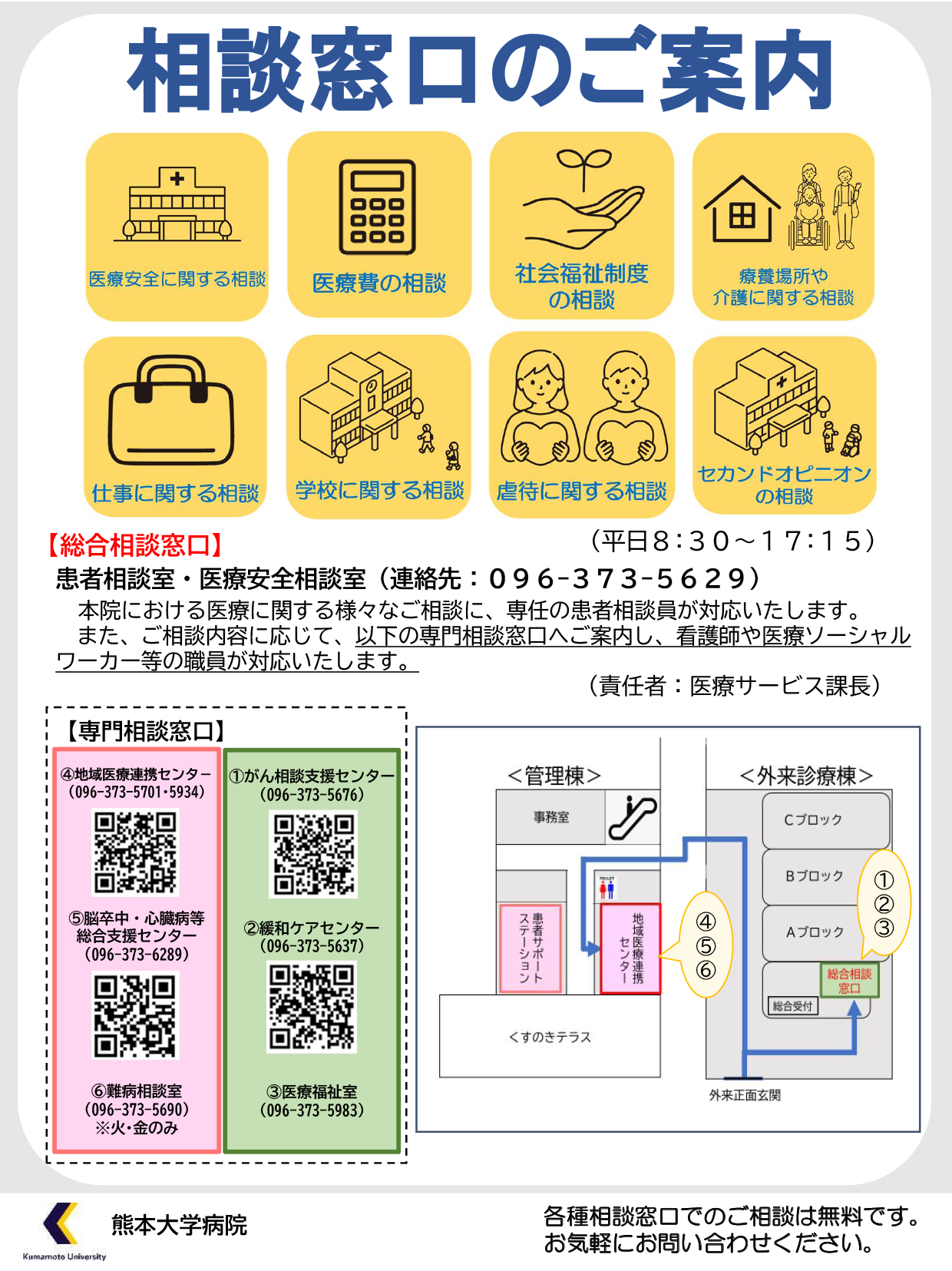 【連絡先】096-373-5629(患者相談室・医療安全相談室直通)